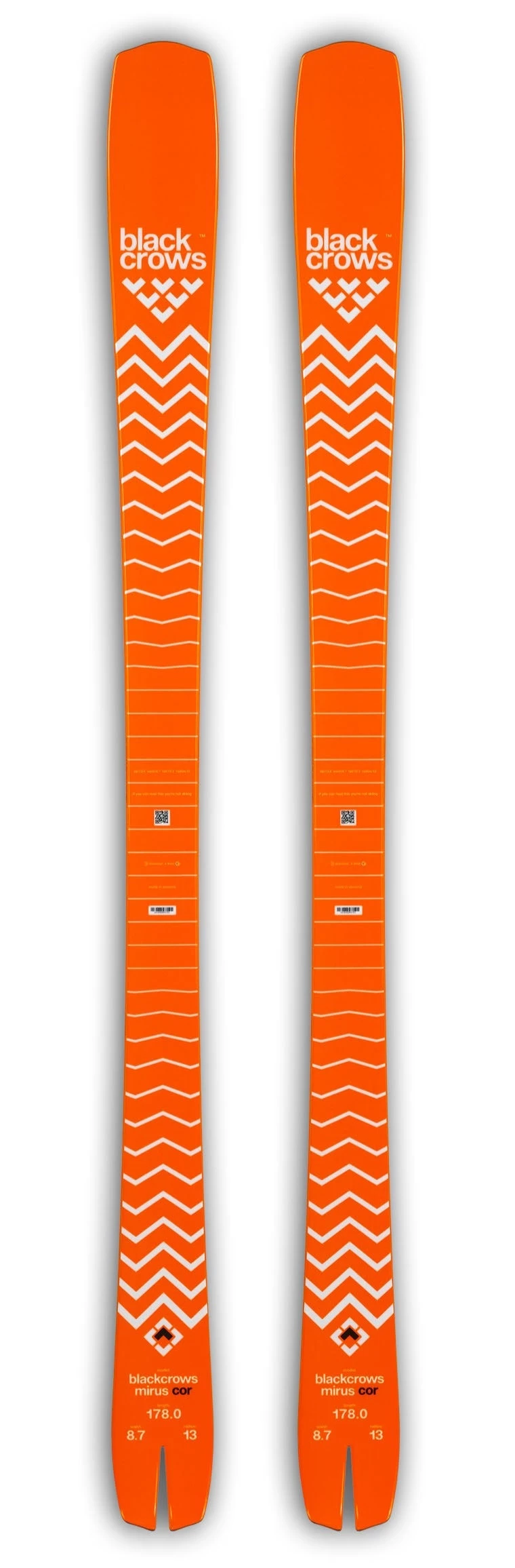 A brand new UFO, the Mirus’ Cor is a ski thought for performance and design, to achieve an alliance between two worlds: freestyle and the most angular curves of today. Built with a fairly long rocker and a split tail, it allows short curves for playing, for piste, and for the side of the ski run, it is carving in a black crows approach and/or all terrain freestyle. Accessible, well-built and creative from any point of view.