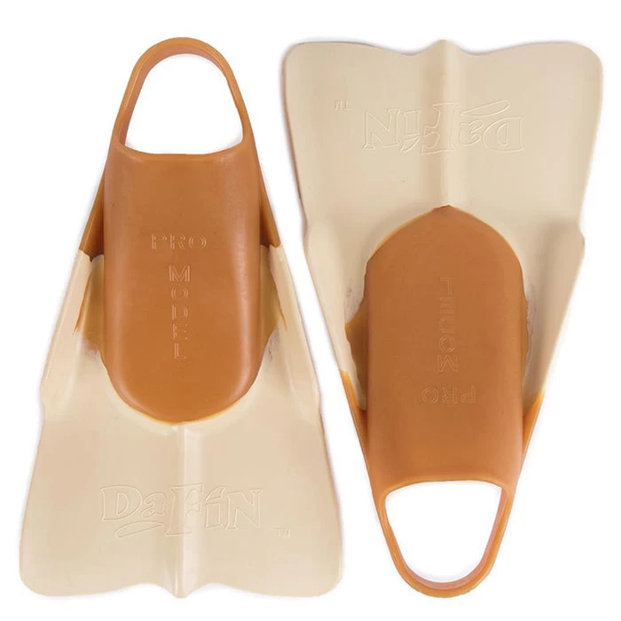 Developed in Hawaii with input from world renowned pros such as Mark Cunningham and Brian Keaulana, DaFiN was granted a U.S. Patent for its original design. DaFiN combines unparalleled comfort with exacting construction to create a swim fin that performs under the most extreme conditions. The side rails — the “strakes”— on DaFiN are rock solid but run only about half way down the length of the fin where they angle back to the blade. This forces the fin to flex right at this critical point. The raised v-shaped foot pocket combined with a stiff blade working together at the point of flex creates maximum acceleration of the water flowing over the fin surface resulting in more thrust per kick with less effort. For such a powerful fin, it is unusually light in weight. DaFiN floats in the ocean and there is no right or left foot difference so DaFiN can be worn on either foot. DaFiN is the 1 choice of lifeguards, body surfers,and top water men around the world and is standard issue equipment for more than 60 municipal lifeguard and surf rescue agencies in the USA.
