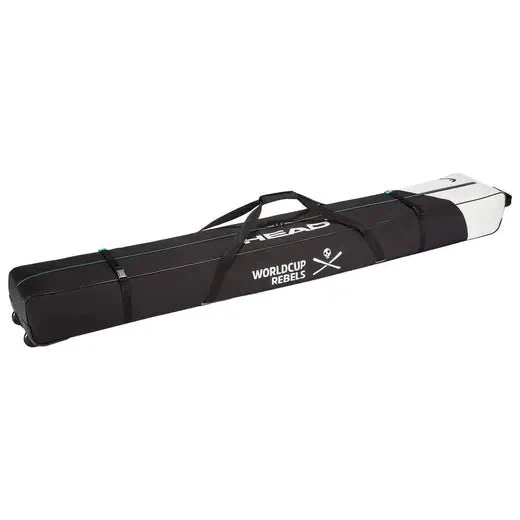 Pick up this spacious Head Rebels Double Skibag. You can transport two pairs of skis along with your poles in a convenient compartment, all secured by adjustable compression straps to prevent shifting and maintain a compact arrangement.